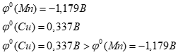 Запишем значения стандартных электродных потенциалов марганца и меди: