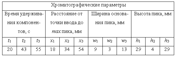 По данным хроматограммы (табл. 11) рассчитать число теоретических тарелок (n) для всех трёх компонентов.