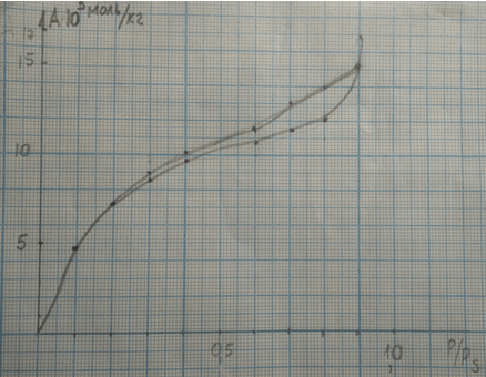 1. По экспериментальным данным строим изотермы адсорбции и десорбции