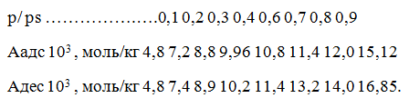 Рассчитаем адсорбционный потенциал адсорбата для относительного давления по уравнению