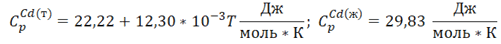 теплоемкости от температуры для Cd(Т) выражена уравнением: