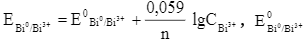 , стандартный потенциал висмута, равный +1,215 В; n заряд иона металла, - концентрация иона металла, равная 0,1 моль/л по условию задачи.