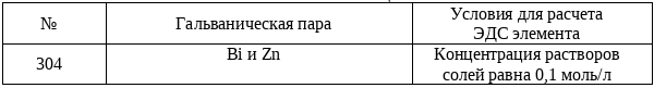 В приведенном процессе участвуют две окислительно-восстановительные пары Bi0/Bi3+ и Zn0/Zn2+. Электродные потенциалы этих пар можно рассчитать по уравнению Нернста.