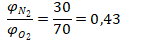 Так как окислительная среда отличается по составу от воздуха, определим объемное соотношение кислорода и азота по формуле: