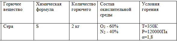 Рассчитать объем окислительной среды, м3, необходимый для горения i-того горючего вещества (таблица 1.2.).