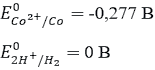 По справочным данным определяем стандартные электродные потенциалы кобальтового и стандартного водородного электродов: