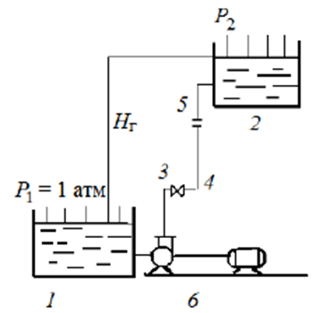 Рис. 2. Технологическая схема перекачивания жидкости: