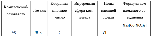 В одном случае надо по данной формуле комплексного соединения определить комплексообразность, лиганды, координационное число, внутреннюю и внешнюю сферу комплекса.