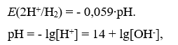 «Вычислить потенциал водородного электрода в растворе, содержащем 5,61 г/дм^3 КОН. Потенциал водородного электрода вычисляем по уравнению Е(2Н^+/Н_2) = - 0,059∙рН.»