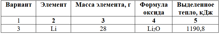 «Запишите реакцию взаимодействия указанного по варианту элемента с кислородом. Используя приведенные в табл. 3.1 данные, рассчитайте энтальпию образования оксида.»