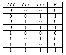 В таблице приведён фрагмент таблицы истинности функции F, содержащий все наборы аргументов, при которых функция F истинна.