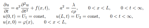 Температуры концов стержня равны u(0, t) = U1 = const, u(L, t) = U2 = const.
