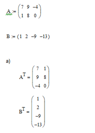 a. | Транспонировать матрицы A и B. |