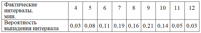 Частота движения составляет 7,5 ед./час. Регулярность движения автобусов соблюдается на 81%. Определить величину допустимых отклонений от планового интервала.