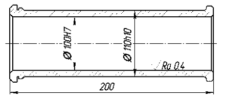На основании заданного эскиза рисунок 1, можно предположить следующее служебное назначение детали. Деталь выполняет функцию гильзы, по внутренней поверхности 100H7 которой осуществляется перемещение поршня гидравлического или пневматического цилиндра. Базирование самой детали осуществляется по наружной цилиндрической поверхности 118h10 и 110h10 мм. Справа и слева в детали имеются цилиндрические буртики для фиксации гильзы в устройстве. Конструкторской базой является отверстие, вспомогательными базами является наружные цилиндрические поверхности 110h10 и 118h10, а также оба торца. Остальные по...