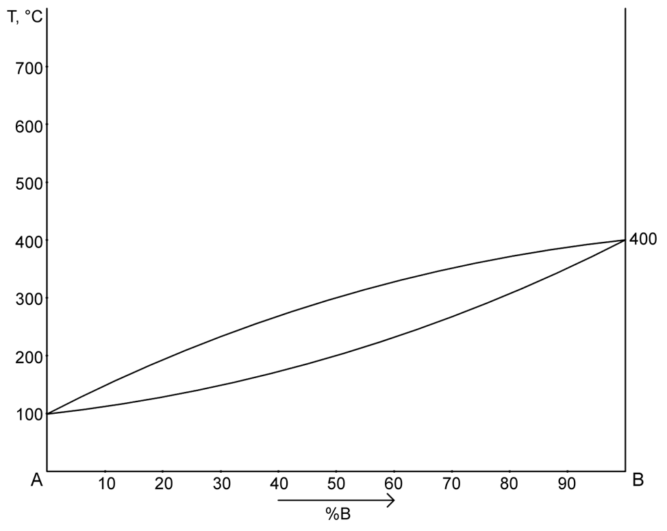 4. Определить число степеней свободы для сплава с 10%В при Т= 300°C