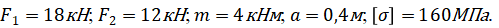 . Материал – сталь, допускаемое напряжение 160МПа. Рассчитать площади поперечных сечений и сделать вывод о целесообразности применения сечения.