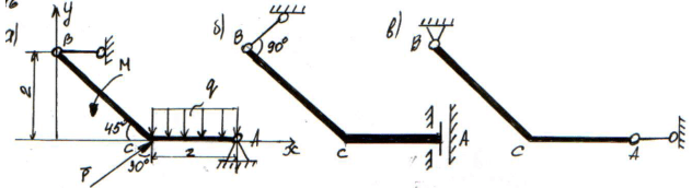 На рис.4 реакцию неподвижной шарнирной опоры А изображаем двумя её составляющими ХА и YA; реакцию подвижной шарнирной опоры В изображаем ХВ.