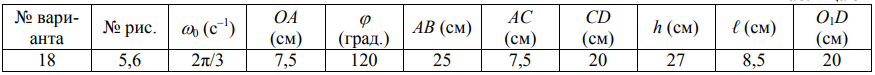 «Приняв угловую скорость кривошипа ОА постоянной, определить для заданного положения механизма (рис. 5.6): 1. скорости точек A, B, C, D механизма и угловые скорости звеньев AB и CD при»