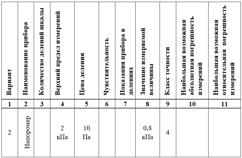 Определение параметров и погрешностей прибора. Определить недостающие в табл. 18 параметры средства измерения для своего варианта.