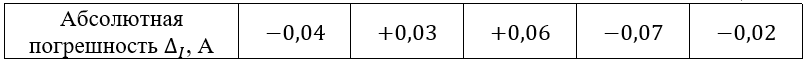 Технический амперметр магнитоэлектрической системы с номинальным током Iн=2 A, с числом номинальных делений αн=100 имеет оцифрованные деления от нуля до номинального значения, проставленные на каждой пятой части шкалы (стрелки обесточенных амперметров занимают нулевое положение). Поверка технического амперметра осуществлялась образцовым амперметром той же системы.