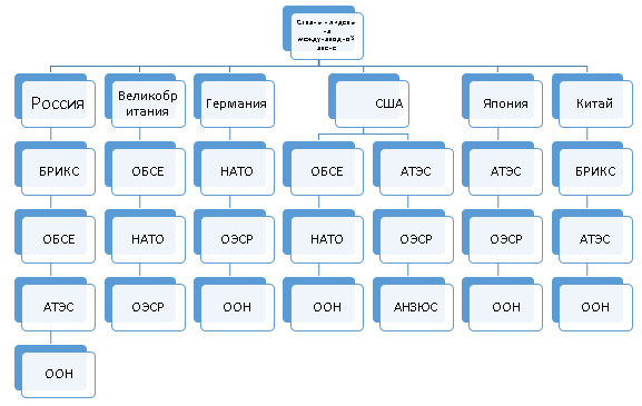 «Выписать экономические, политические и военные блоки, которые встречаются наиболее часто в предыдущей схеме (в которые входят 2 и более стран из списка) в таблицу и охарактеризовать их цели и взаимодействие внутри этих блоков конкурирующих между собой.»