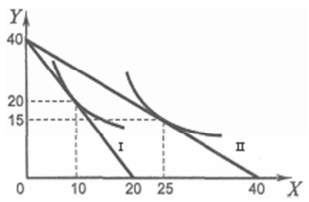 Допустим, потребитель имеет доход 200 дол. в месяц. На рисунке 1 показаны две бюджетные линии и соответствующие им кривые безразличия.