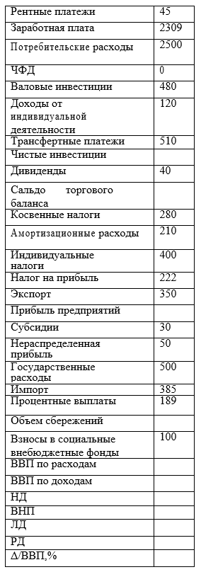 На основе имеющихся данных заполните пустые ячейки. Каждое решение должно быть полностью приведено (последовательность нахождения недостающих параметров). ВВП необходимо найти двумя способами.