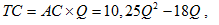 Общие издержки ТC = 10,25Q2 – 18Q. Определите максимизирующий прибыль объем производства, а также размер прибыли.