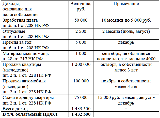 Рассчитаем в таблице 1 налогооблагаемый доход физического лица.