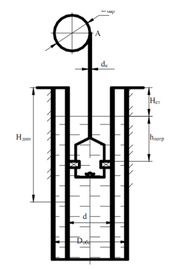 где dт- диаметр подъемный труб, м; dк- диаметр каната, м; h- среднее погружение сваба под уровень, h=75-150 м