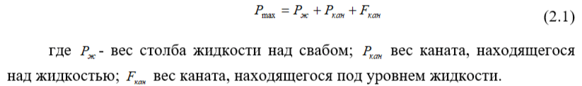 1. Определить максимальную глубину погружения сваба под уровень жидкости hпогр исходя из условия прочности каната с учетом коэффициента запаса прочности S=2.
