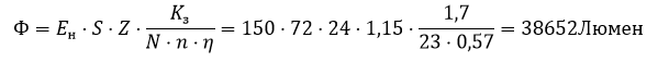 Для всех вариантов расчета принять коэффициент неравномерности освещения Z = 1,15.
