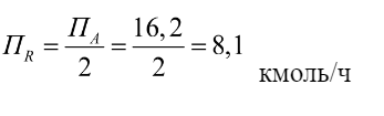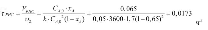 «В реакторе идеального смешения протекает реакция 2А = R. Производительность по продукту А составляет 16,2 кмоль/ч, константа скорости реакции – 0,05 м3/(кмоль·с), степень превращения в реакторе – 0,65, концентрация вещества А в исходном»