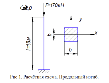 Стальной стержень длиной «l» заданного сечения с заданным способом закрепления сжимается нагрузкой. Требуется из расчёта на устойчивость с помощью таблиц коэффициентов снижения допускаемых напряжений определить размеры сечения стержня