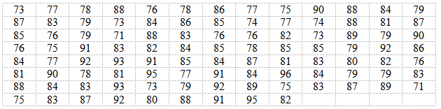 1. По данным выборки строим интервальный вариационный ряд. Находим размах варьирования признака Х по формуле . Просматривая исходные данные, находим . Тогда . Определяем число интервалов (число столбцов в таблице) вариационного ряда. Пусть . Длину каждого частичного интервала определяем по формуле . Так как исходные данные мало отличаются друг от друга и не содержат десятичных знаков, то величину h округляем до целого, то есть берем