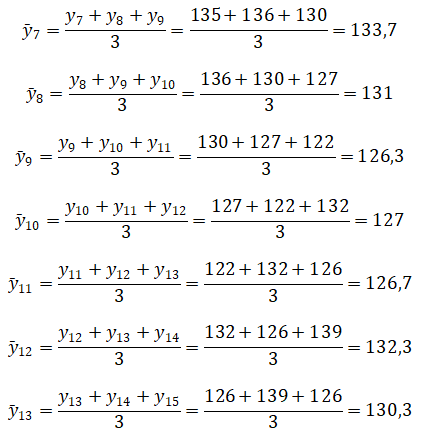 Расчетная таблица для определения значений трехчленной скользящей средней