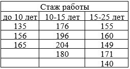 Зависит ли производительность труда от стажа? Какой критерий вы будете использовать и почему?