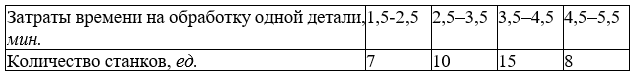 Было проведено 20%-е выборочное обследование в форме простой случайной повторной выборки (табл. 3). долю станков предприятия, с затратами времени на обработку одной детали более 4,5 минут, гарантируя результат с вероятностью 0,975;