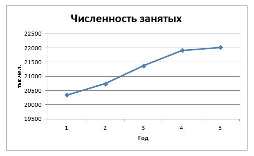 По графику видим, что численность занятых с каждым годом увеличивается.