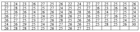 Данные о посещаемости библиотеки за сто дней приведены в таблице. Посчитаем частоту попадания наблюдаемых знаний в частичные интервалы.