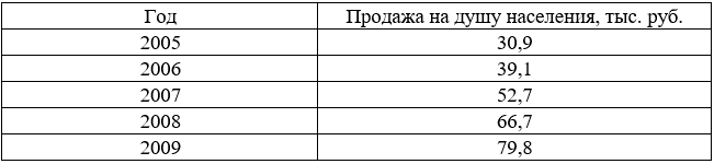 Данные об объеме розничного товарооборота на душу населения области: