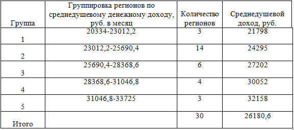 Таблица 2 – Группировка регионов по среднедушевому доходу.