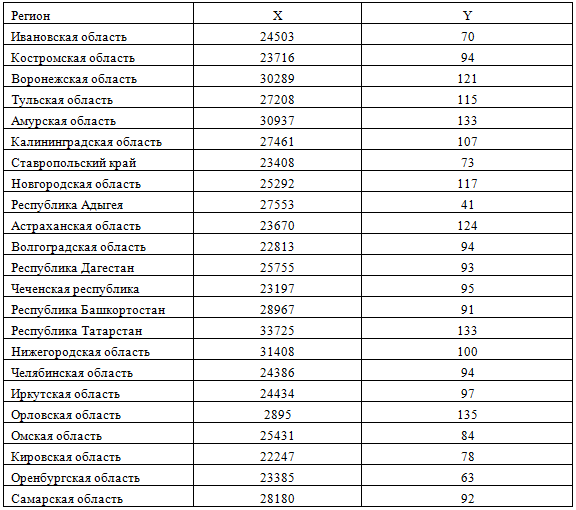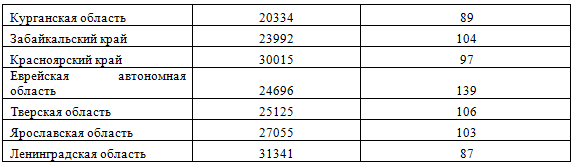 Таблица 3 - Ранжированный ряд регионов по среднедушевому денежному доходу.