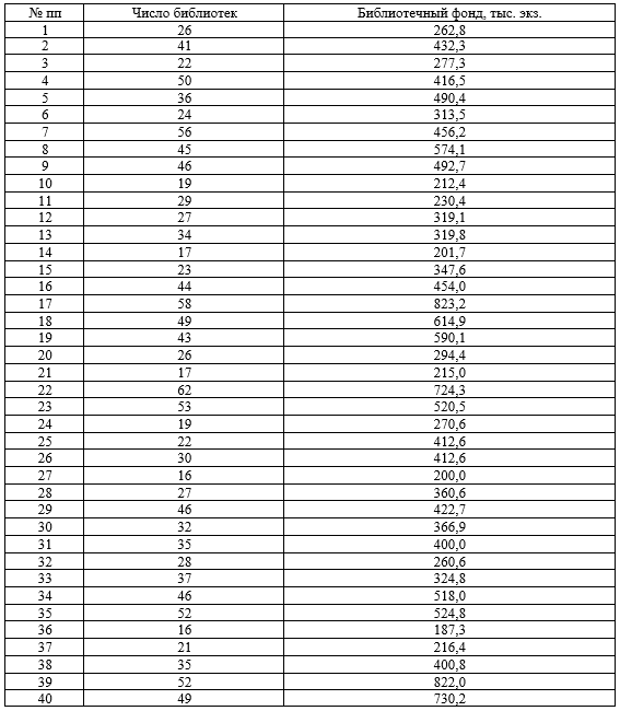 1. Построим интервальный вариационный ряд распределения районов по числу библиотек (5 интервалов). Предварительно отсортируем данные по возрастанию числа библиотек.