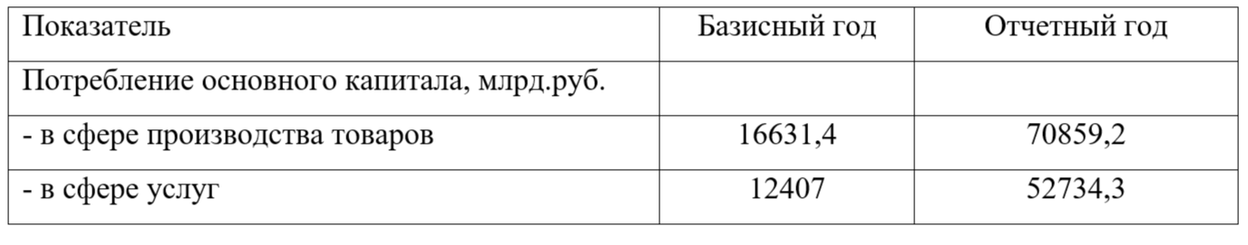 Имеются данные о потреблении основного капитала в фактических ценах: