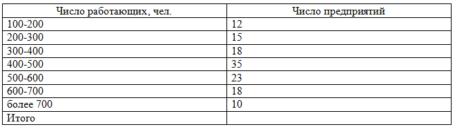 Имеются данные о распределении предприятий района по числу работающих. Определить число работающих, приходящихся в среднем на 1 предприятие.