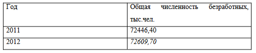 По данным таблицы данные определим общую численность безработных на конец 2011 и 2012 года: