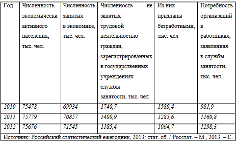 «Имеются данные об экономической активности и занятости населения Российской Федерации на конец периода (таблица). Определите на конец 2011 и 2012 гг.:»