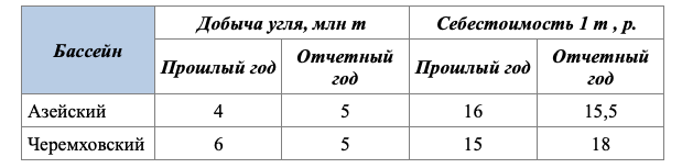 Определить изменение средней себестоимости угля по каждому бассейну и по двум бассейнам в целом.